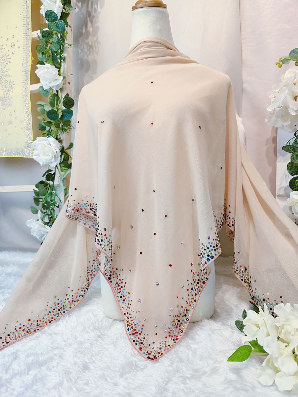 Combination size of White and colorfull crystals